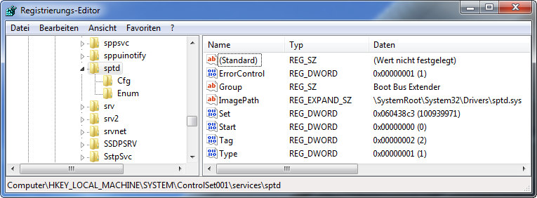 P.S.: To disable SPTD double-click the DWORD value named 'Start' on the right and change the 'Value data' to 4.