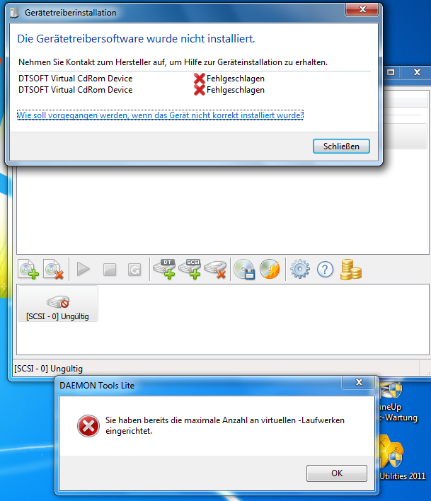 ich hab seit heute ein Problem mit Daemon Tools Lite. Wollte eine iso mounten, aber hatte keine virtuellen Laufwerke in der List. Dachte mir mhm yo kein Ding, einfach ma eins hinzufügen, aber das klappte nicht, es kam die Error Meldung DTSOFT Virtual cdrom device fehlgeschlagen.