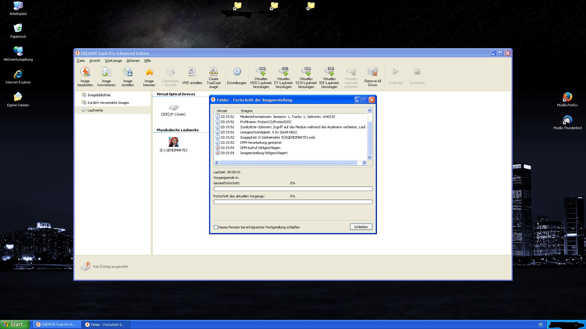 Jetzt das merkwürdige. Wenn ich die letzte Vorgängerversion (V5) von DT Pro Adv. installiere, die selben Einstellungen vornehme, da klappts mit der Image-Erstellung OHNE Probleme...
